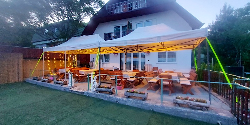 Kert:Játszási lehetőség (csúszda, hinta, homokozó, mászóka, trambulin)Grillezési és bográcsolási lehetőségBiztonságos parkolás a zárt udvarban Szeretettel várunk minden kedves pihenni vágyó vendéget.