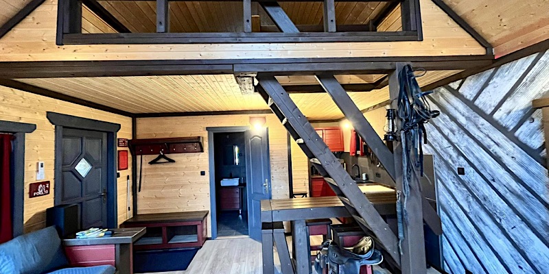 Az alsó szinten egy tágas nappali étkezővel, teljes körűen felszerelt konyha és egy fürdőszoba zuhanyzóval áll rendelkezésre. A kanapé kényelmes vendégággyá alakítható, míg a nagy képernyős tévé Netflix csatornái gondoskodnak a teljes kikapocsolódásról. Az infraszauna a vendégházban belül található, mely tökéletes zárása lehet egy aktív napnak.